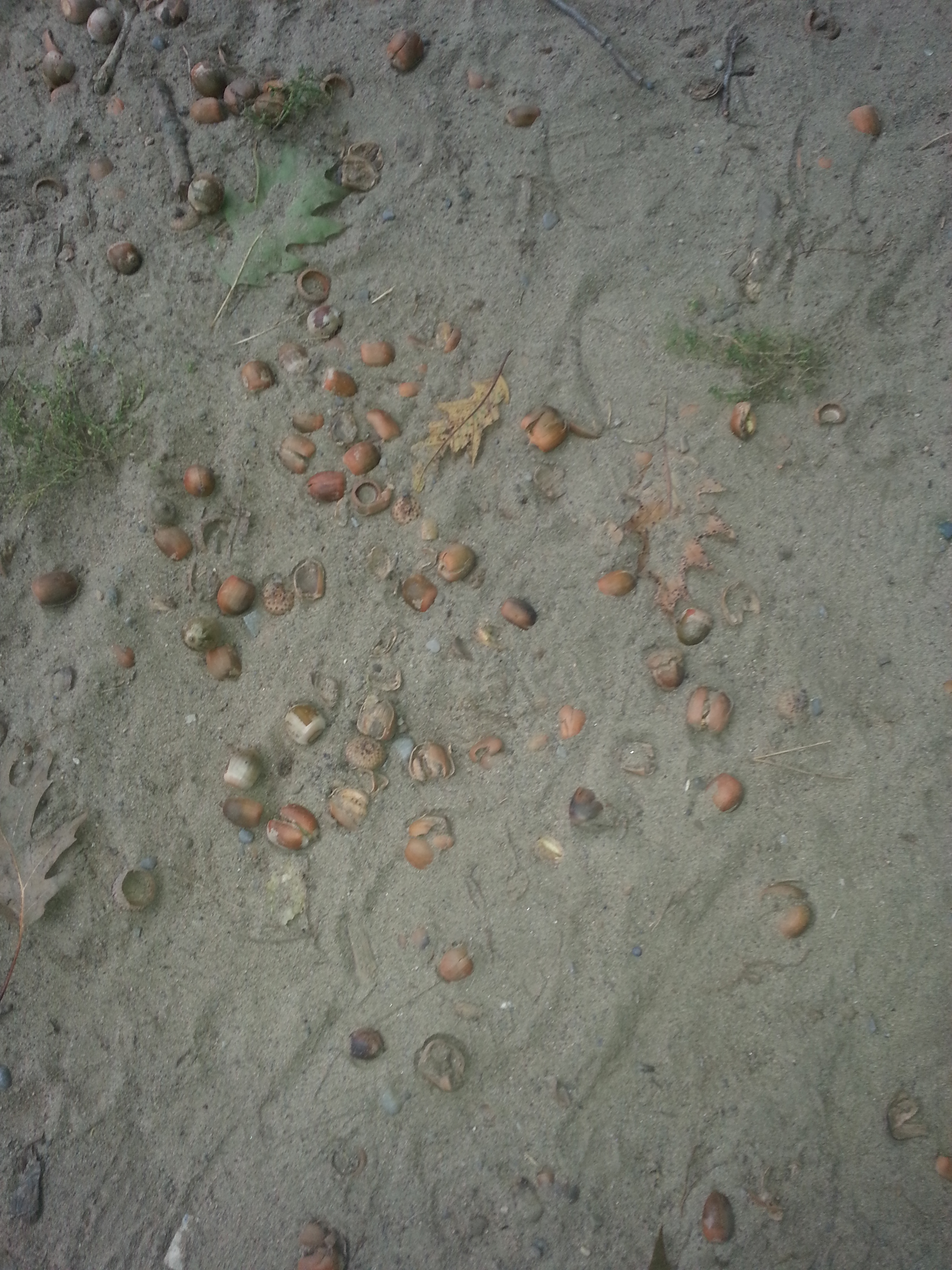 Eventually, I come to the foot of Warden Avenue. It’s not exactly a landmark, but it’s cool enough to me. Where the street ends, a path begins. As I walk, I hear crunching under my feet. There are fallen nuts or something embedded in the sand. I pick one up as a souvenir and place it in my bag. At the end of the path is a gate – or, at least, was a gate. Past it is, of course, the Scarborough Bluffs. I can hear the waves from where I am. It looks as though someone might’ve attempted this descent or at least part of it, but it’s not an adventure I’m up for, so I turn back.